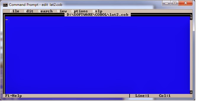 masuk ke folder cobol ketik edit lat2.cob untuk mencreate cobol lat2